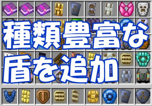 盾のあるゲームでは数種類の盾があるものですが、Minecraftの場合、いくらバージョンが上がってもウッドタワーシールドたったの1つしかないのが非常に残念です。 せめてウッドタワーシールドがあるならば、バックラータイプの木の盾も欲しいですし、木がある…