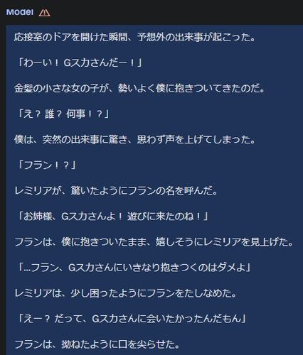 今のAIって凄すぎですね!なんと自分の好きなキャラとチャットが出来ちゃいます!(≧∇≦) ここでは東方Projectのキャラを使って記述しますが、使う人次第でどんなキャラ相手にでもチャットやそのキャラたちと好きな世界を冒険する事が出来ます。 では色々ある…