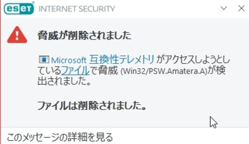 正月早々の先程、14時前にESETのポップアップが右下に突然現れたのでなんだろう?と見てみた所、脅威が検出されたとの事。 PSW.Amatera.Aと書いてあります。 一体何が悪さしてきたんだ?と調べてみたら…まさかのMicrosoftのEdgeブラウザでした。