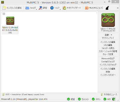 MultiMCにfabricのアイコンが作られたら、ダブルクリックして起動。